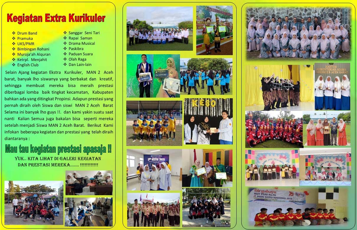 Di MAN 2 Aceh Barat, peserta didik tidak hanya dibekali ilmu pengetahuan, tetapi juga nilai-nilai keislaman, kedisiplinan, serta keterampilan hidup yang penting untuk bekal melanjutkan studi ke jenjang yang lebih tinggi maupun terjun ke masyarakat. Berbagai program unggulan dan kegiatan ekstrakurikuler dirancang untuk menggali potensi, minat, dan bakat siswa agar dapat berkembang secara maksimal.